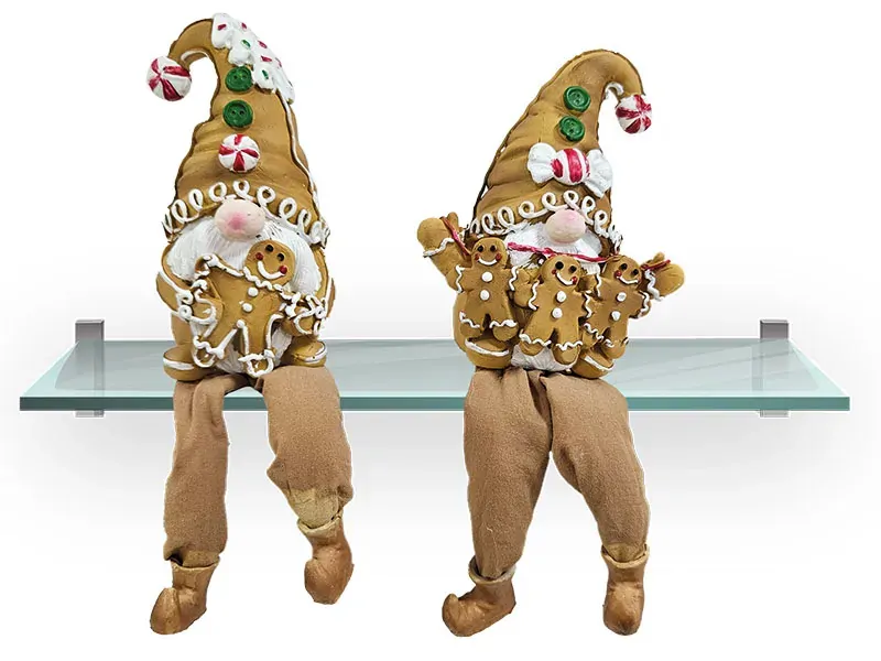 Bring a touch of charm to your home with our adorable gnome duo! Each sporting playful floppy fabric legs that dangle wherever you display them, they add the perfect touch of gingerbread design to your home.